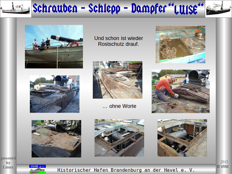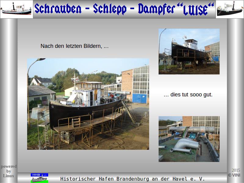 Den Werftaufenthalt habe ich nicht begleitet. Nach Sichtung aller Bilder, die zahlreich vorhanden sind und die persönliche Bekanntschaft der Beteiligten, machten es mir möglich, auch hier eine objektive Präsentation zu erstellen.