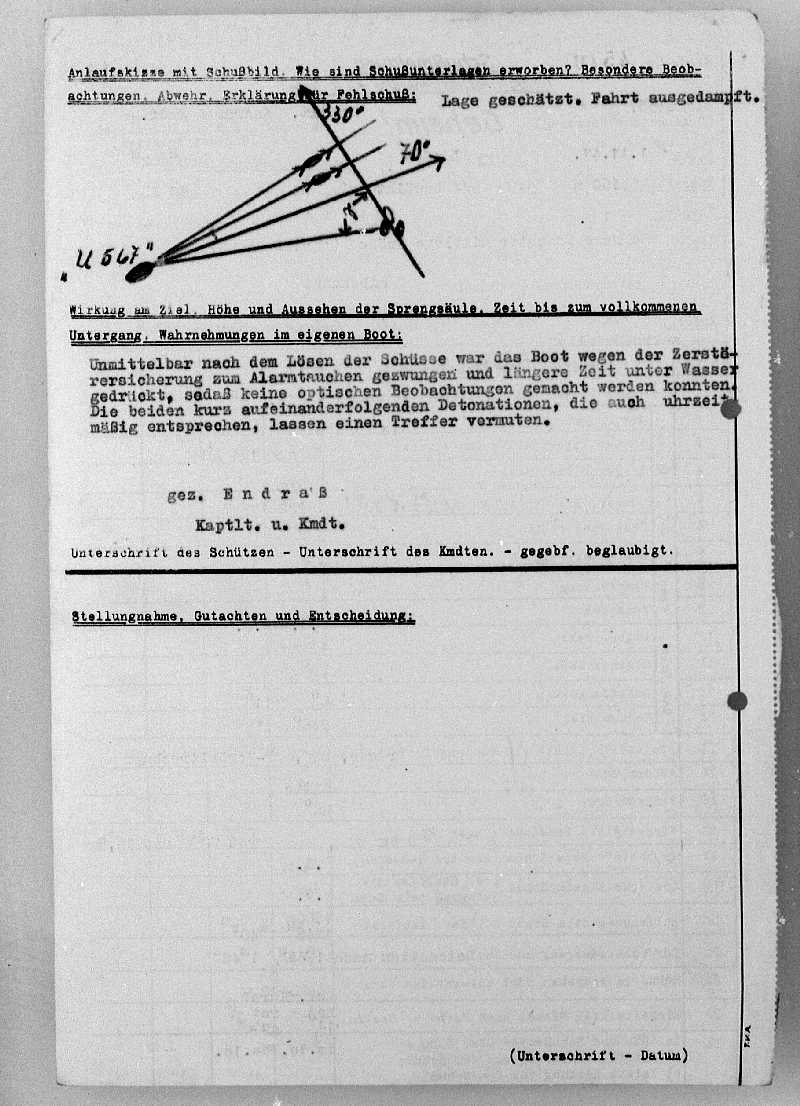 | Fussnote : | U-552 und U-567 horchten nur 1 oder 2 Detonationen, konnten aber keine Beobachtungen machen. |