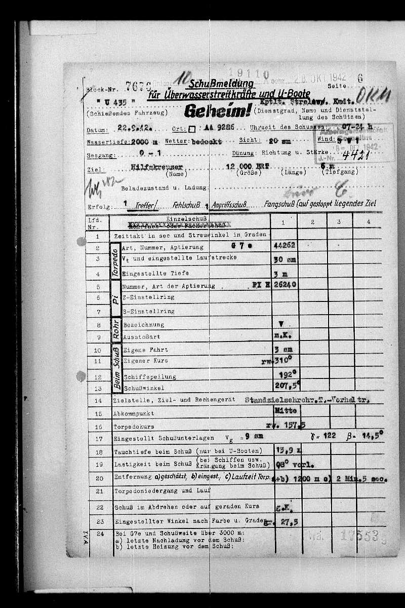 | Eingesetzte Waffe(n) : | Torpedo(s) |