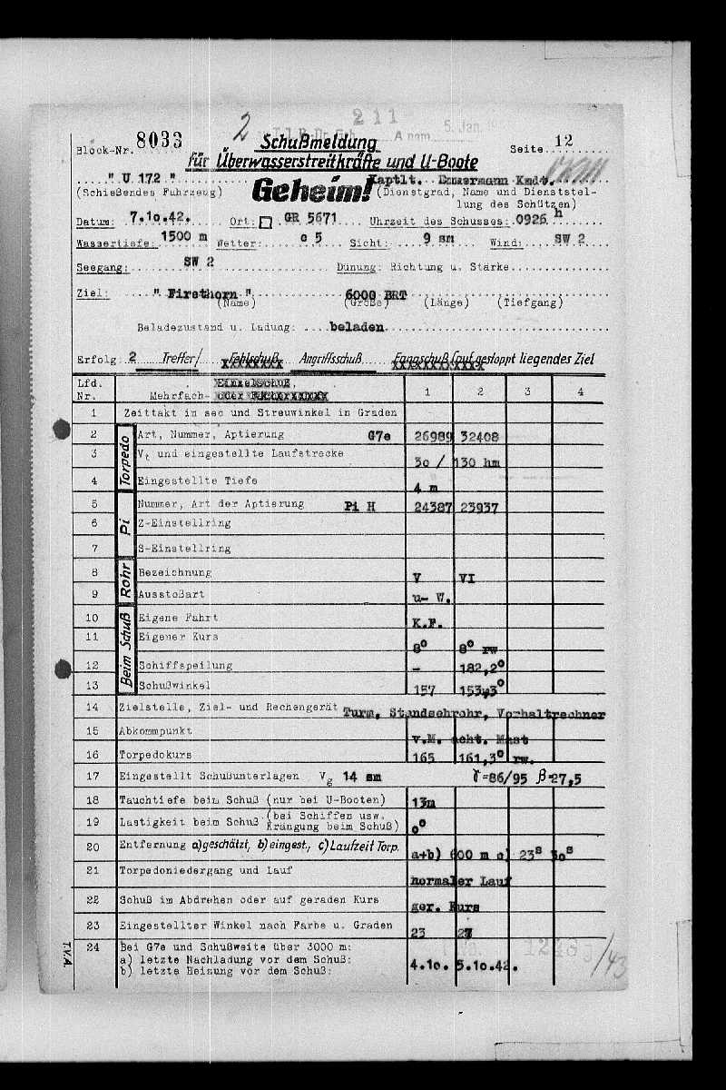 | Eingesetzte Waffe(n) : | Torpedo(s) |