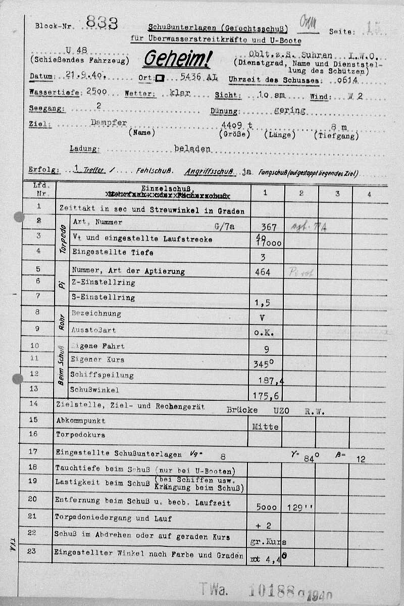 | Eingesetzte Waffe(n) : | Torpedo(s) |