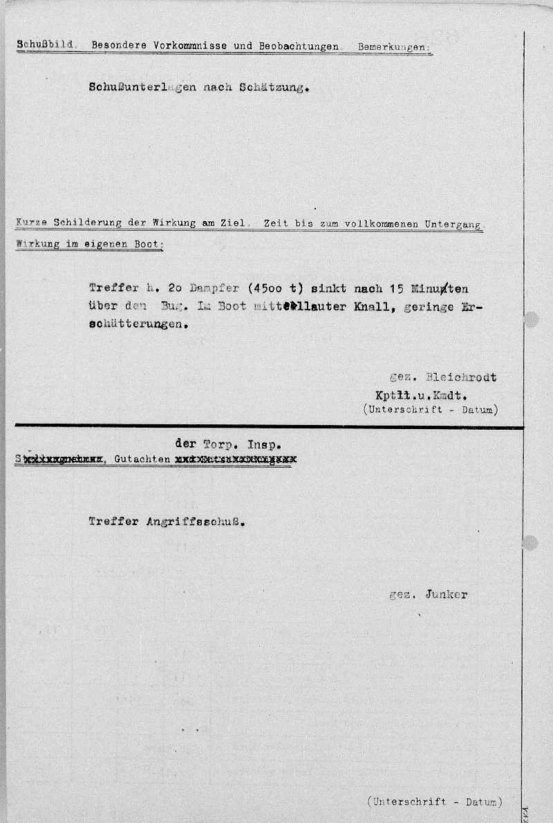 | Eingesetzte Waffe(n) : | Torpedo(s) |