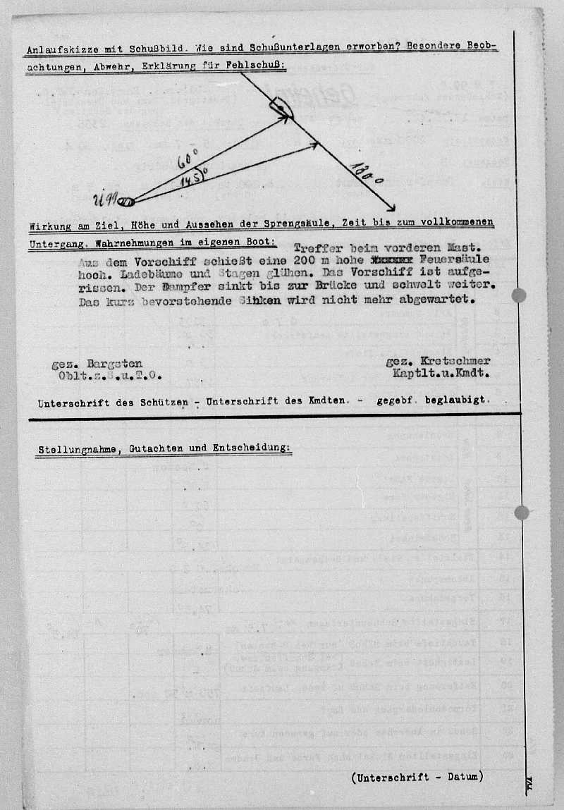 Op.- : Westraum Seegebiet : Nordatlantik Angriffs-Datum : 18.10.1940 Angriffs-Zeit : 23:55 Nation d. U-Bootes : deutsch Name des U-Bootes : U 99 Kommandant : Kretschmer Quadrat : AM 2928 angenommener Ziel-Typ : Dampfer, Frachter angenommene Tonnage : 6000 BRT angenommenes Ergebnis : versenkt Anzahl Torpedos/Minen : 1 Eingesetzte Waffe(n) : Torpedo(s) Konvoi : SC.7 (73) Beobachtungs-Datum : 18.10.1940 Beobachtungs-Zeit : 23:00 Nation des Ziels : griechisch tatsächlicher Ziel-Typ : Dampfer, Frachter Name des Ziels : Niritos Stapellauf : 1907 tatsächliche Tonnage : 3854 BRT tatsächliches Ergebnis : beschädigt Position des Ziels : 57.14w 10.38w Fussnote : Die als Feuerball beschriebene Explosion mit grünlichen Flammen rührte von der Ladung aus 5426 Tonnen Schwefel, und wurde durch die Torpedodetonation ausgelöst (A.Niestlé)
