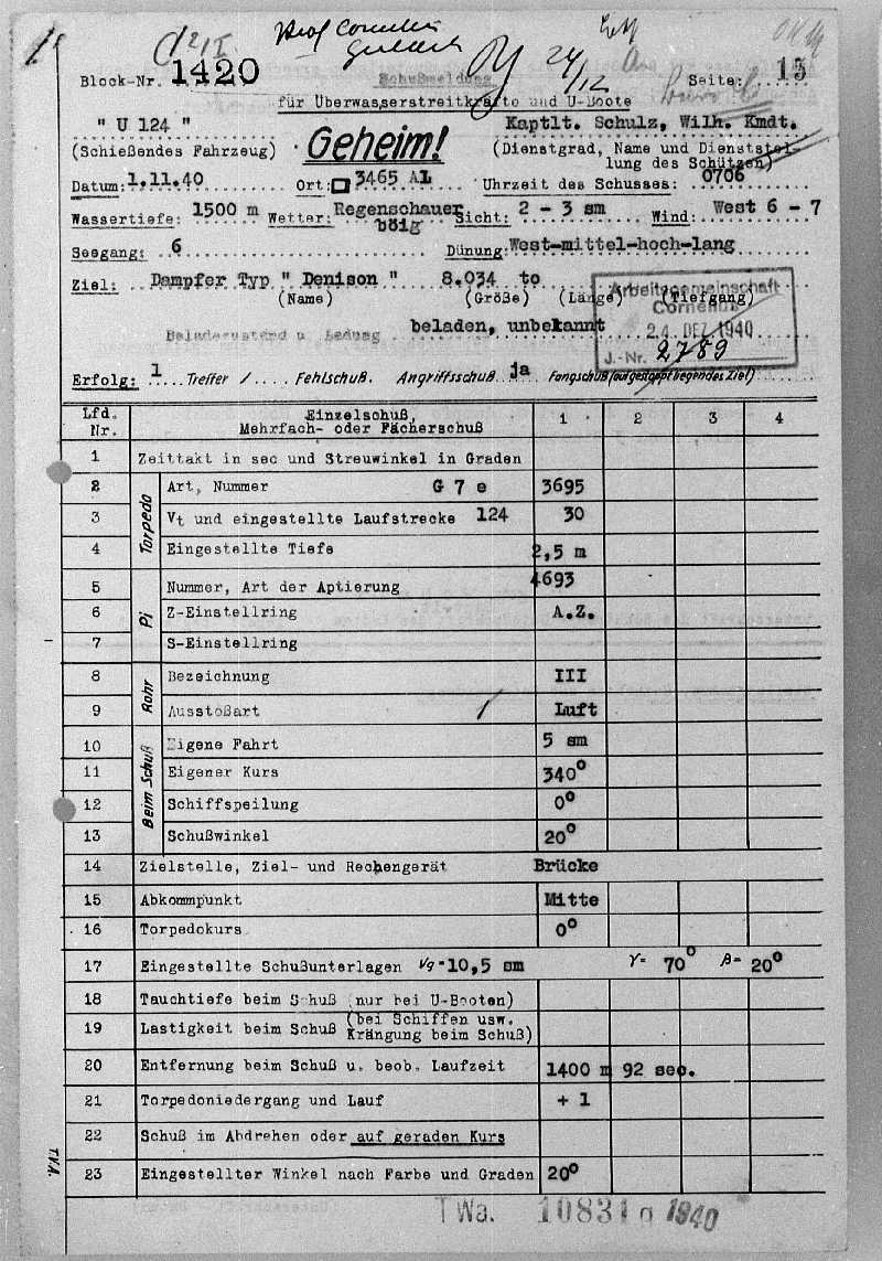| Name des U-Bootes : | U 124 |