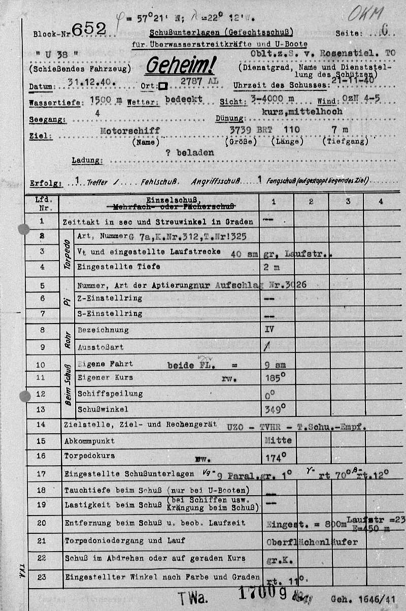 | Name des U-Bootes : | U 38 |