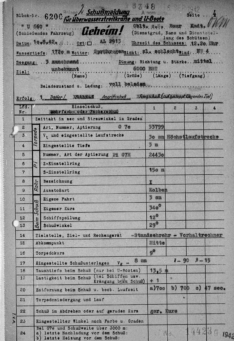 | Name des U-Bootes : | U 660 |