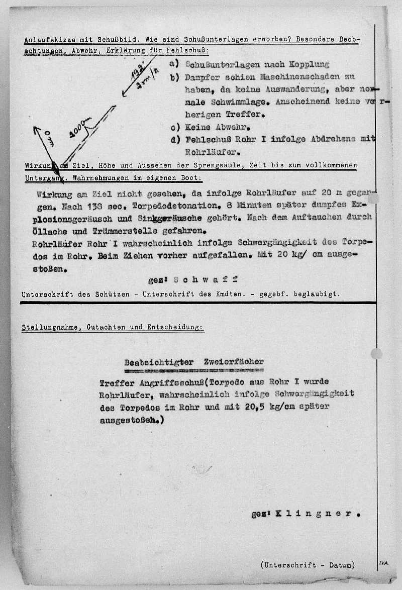 | Eingesetzte Waffe(n) : | Torpedo-Fangschuß |
