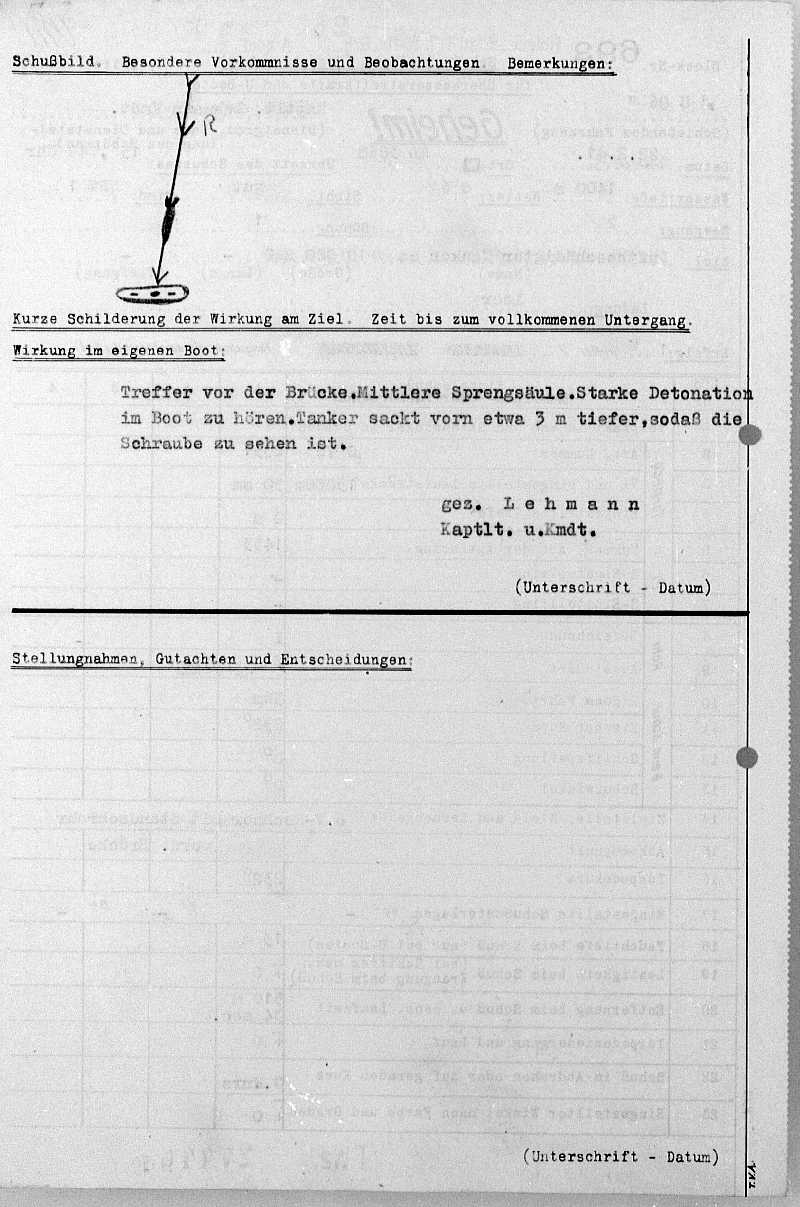 | Eingesetzte Waffe(n) : | Torpedo(s) + T-Fangschuss |