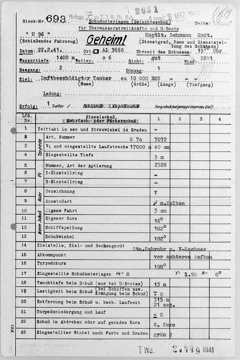 | Name des U-Bootes : | U 96 |