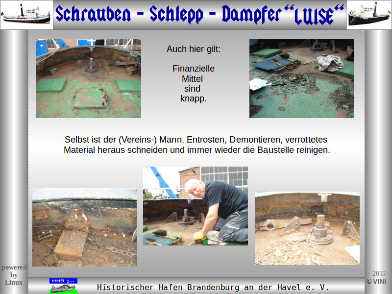Als der Verein Historischer Hafen Brandenburg an der Havel e.V. erfuhr das der SSD LUISE, der seinen Heimathafen in Geltow (unweit von Potsdam) hatte verkauft werden soll, war die Aufregung groß. Die Gebrüder Wiemann Werft baute in der Mehrzahl Schlepper für die Binnenwasserstraßen und ihren Kanälen. Der Verein besitzt zwar eine absolute Rarität den Fischdampfer LINA MARIE, aber ein Vereinsschlepper, der auch noch auf der Werft gebaut wurde, fehlte noch.