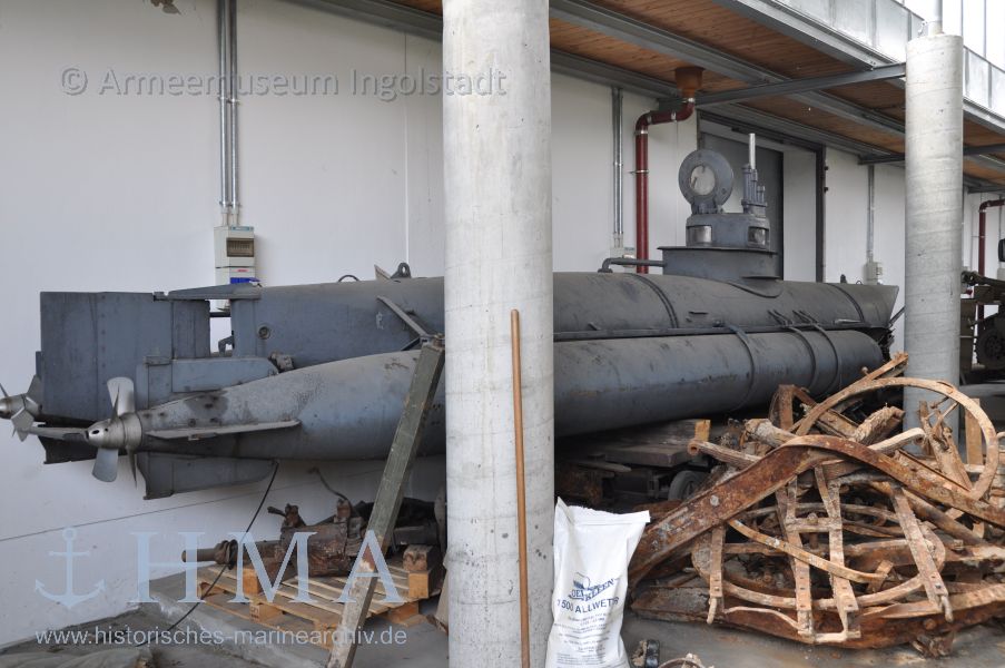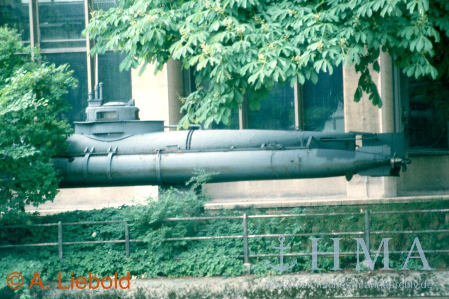 | Anmerkungen : | Ursprünglich am Schnellbootbunker Waalhaven in Rotterdam nach 1945 zusammen mit weiteren Kleinkampfmittel ausgestellt, zog er 1962 nach dem Abriss des Bunker nach Den Helder um. Der ehem. Seehundfahrer Spachmann organisierte die Abgabe der angegriffenen Exponate an das Deutsche Museum München nach vorheriger Restaurierung im Marinearsenal Wilhelmshaven . In München im Außengelände ausgestellt.