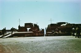| Technische Bemerkungen : | 2 Brückenschiffe des schweren Schiffbaugerätes mit je 7 Mittelpontons. Die Pontons verband ein Stahlgitterrost mit Holzbohlenbelag. Vorschiff mit 2 Kaffen. 2x 2-teilge Deutz-Endschiffe. Zunächst einstöckiges Achterdeckshaus mit aufgesetztem Flakstand. Ab 1942 Doppelstock-Aufbau mit aufgesetztem Steuerhaus, zuerst aus Holz, dann aus Stahl. |